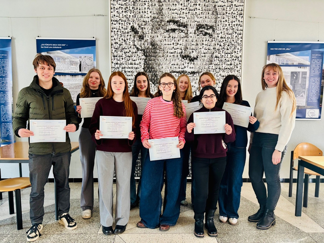 Stolz präsentierten Schülerinnen und Schüler unter freiem Himmel ihr erfolgreiches Konzept zur Weiterentwicklung der Grünflächen und des Schulgartens. In den nächsten Monaten bauen sie nach ihren Plänen gemeinsam mit ihren Lehrkräften Sitzgelegenheiten. „Die Kreativität der jungen Menschen, mit der sie ihre Lernumgebung mitgestalten, ist beeindruckend“, lobte Ralf Göttert, DKHW-Regionalleiter. Das Projekt lege großen Wert darauf, dass sich Schülerinnen und Schüler von der Planung bis zur Durchführung des Projekts in allen Phasen aktiv einbringen. Schulleiter Frank Martin Beck dankte herzlich allen Beteiligten für die bereits geleistete Arbeit und wünscht viel Freude bei der Neugestaltung des naturnahen Lernorts.